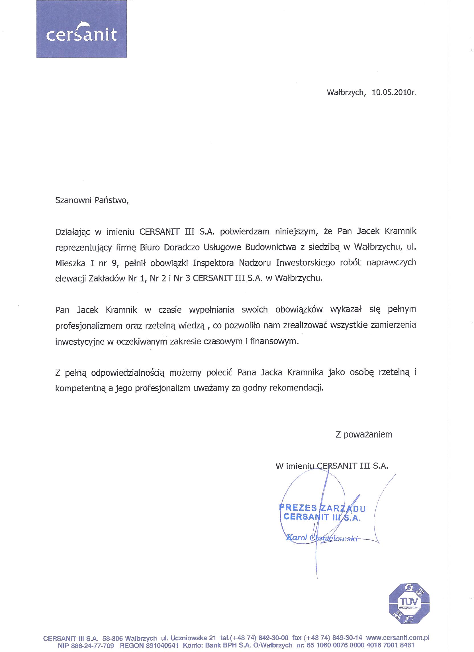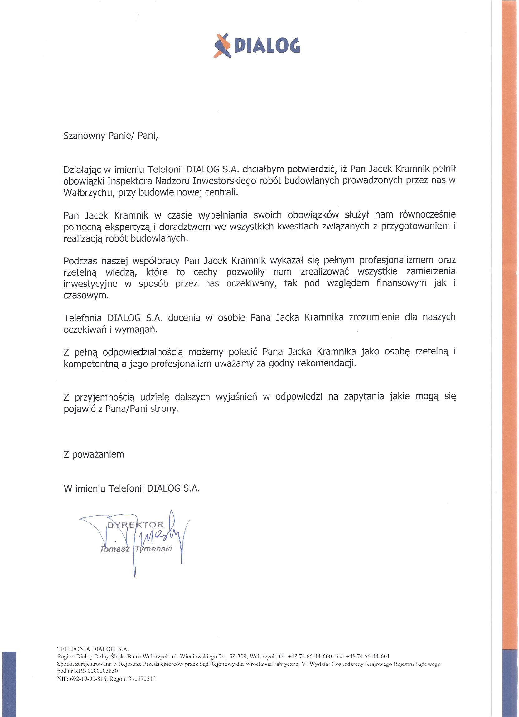 Firma Biuro Doradczo Usługowe Budownictwa mgr inż. Jacek Kramnik, została założona w 1995 roku i działa w formie jednoosobowej działalności gospodarczej, bez przerwy do dnia dzisiejszego.